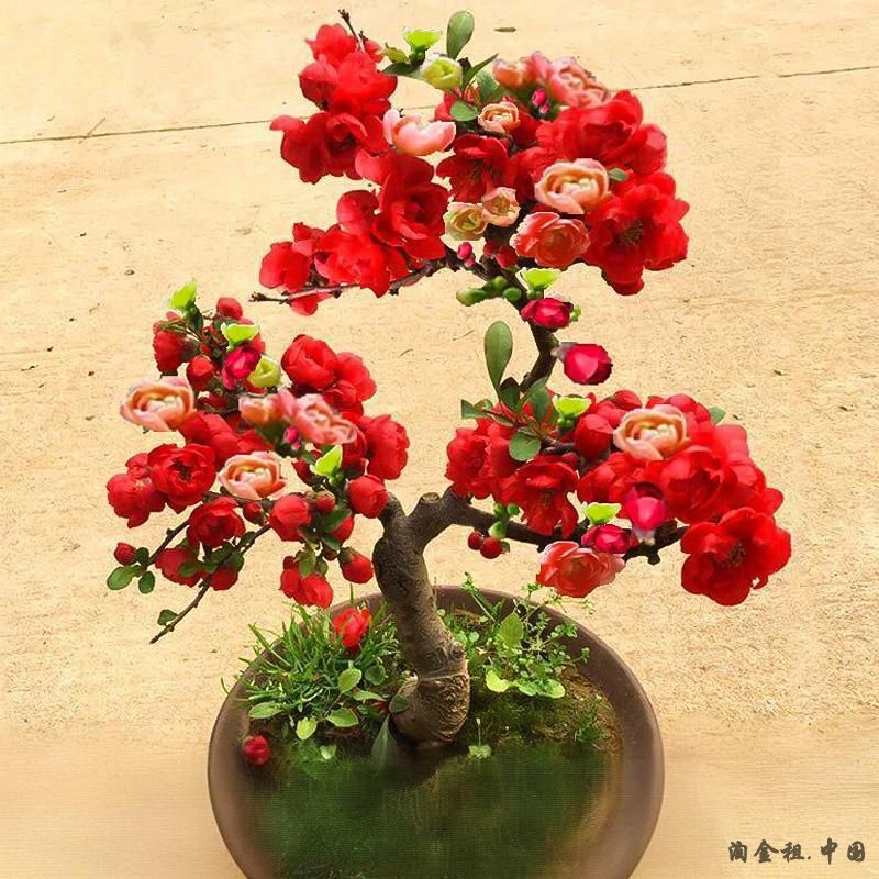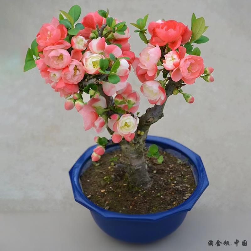 海棠花盆栽带花苞造型老桩盆景花卉四季开花绿植室内客厅阳台摆件