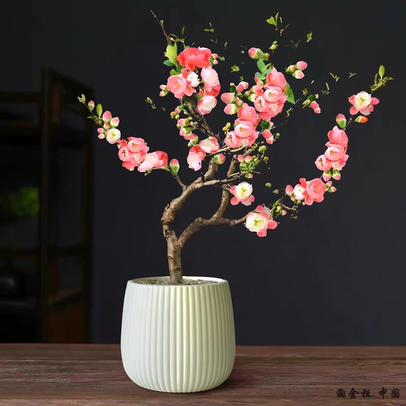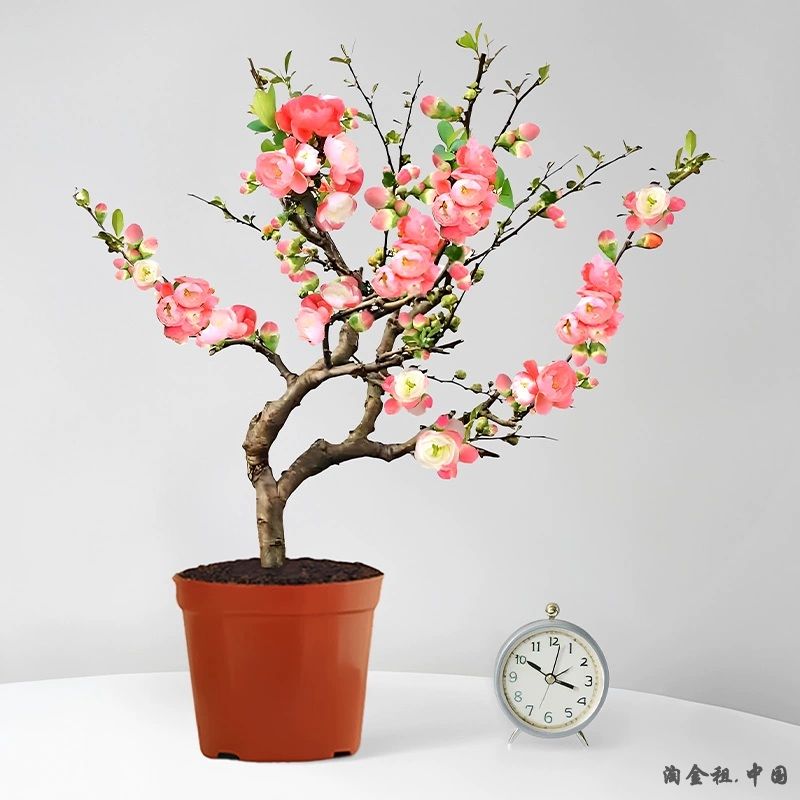 海棠花盆栽带花苞造型老桩盆景花卉四季开花绿植室内客厅阳台摆件