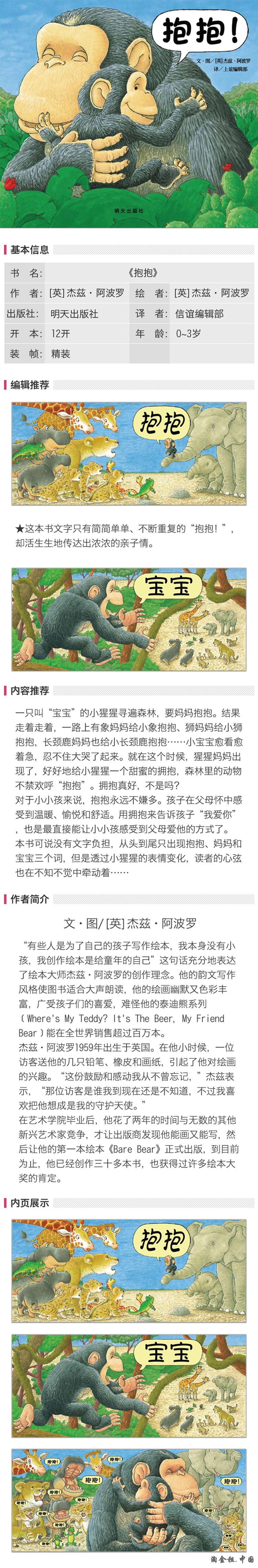 这本书文字只有简简单单、不断重复的“抱抱”, 却活生生地传达出浓浓的亲子情